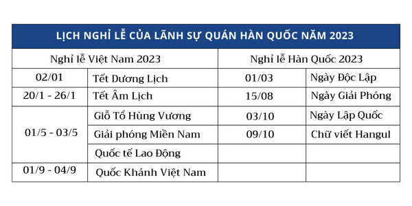 Lịch Nghỉ Lễ Của Lãnh Sự Quán Hàn Quốc Năm 2023